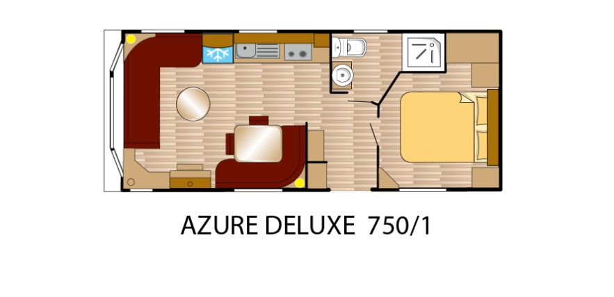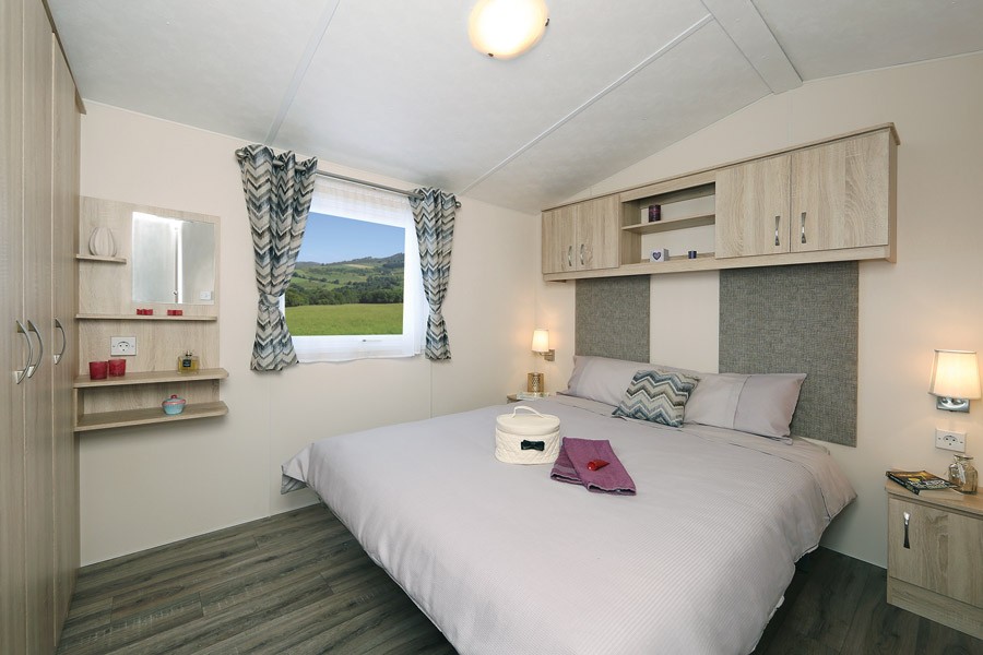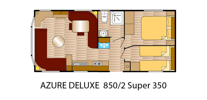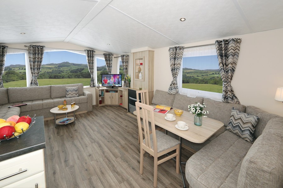 Das Modell Azure Deluxe ist ein Mobilheim mit vielen attraktiven Features und erkennbarem Charme. Es verfügt über einen komfortablen und bestens ausgestatteten Wohnbereich, eine voll ausgestattete Küche und einem luxuriösen Äußeren, geeignet für die ganze Familie.